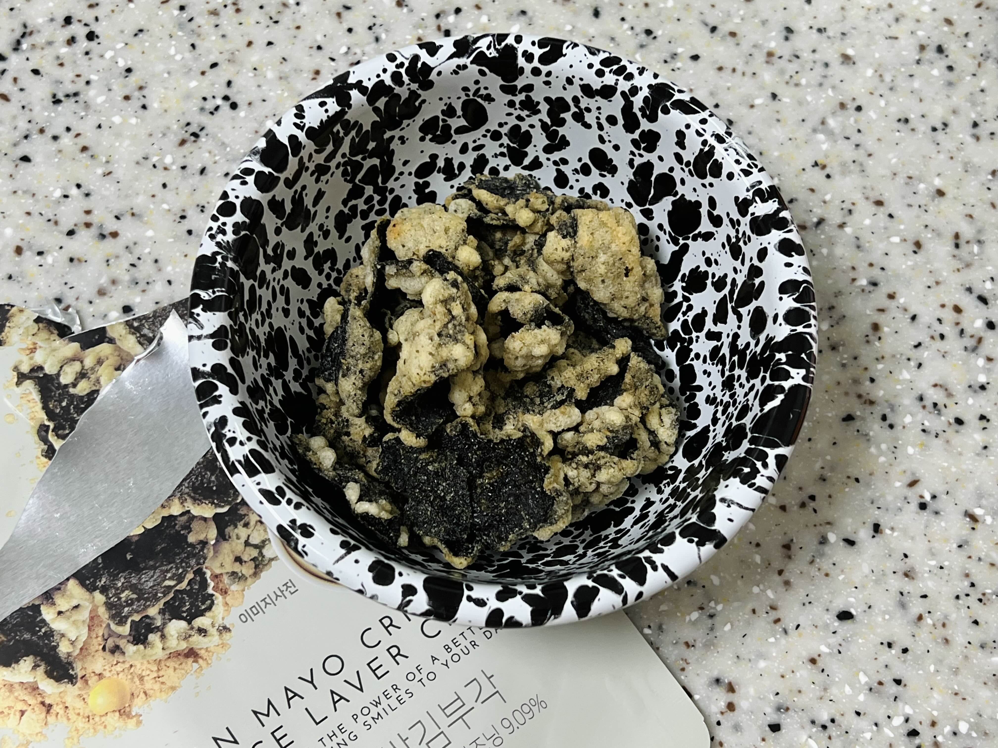 일반 찹쌀김부각은 겉에 아무것도 뿌려져있지 않은데, 콩마요에는 시즈닝같이 뿌려져있다.
