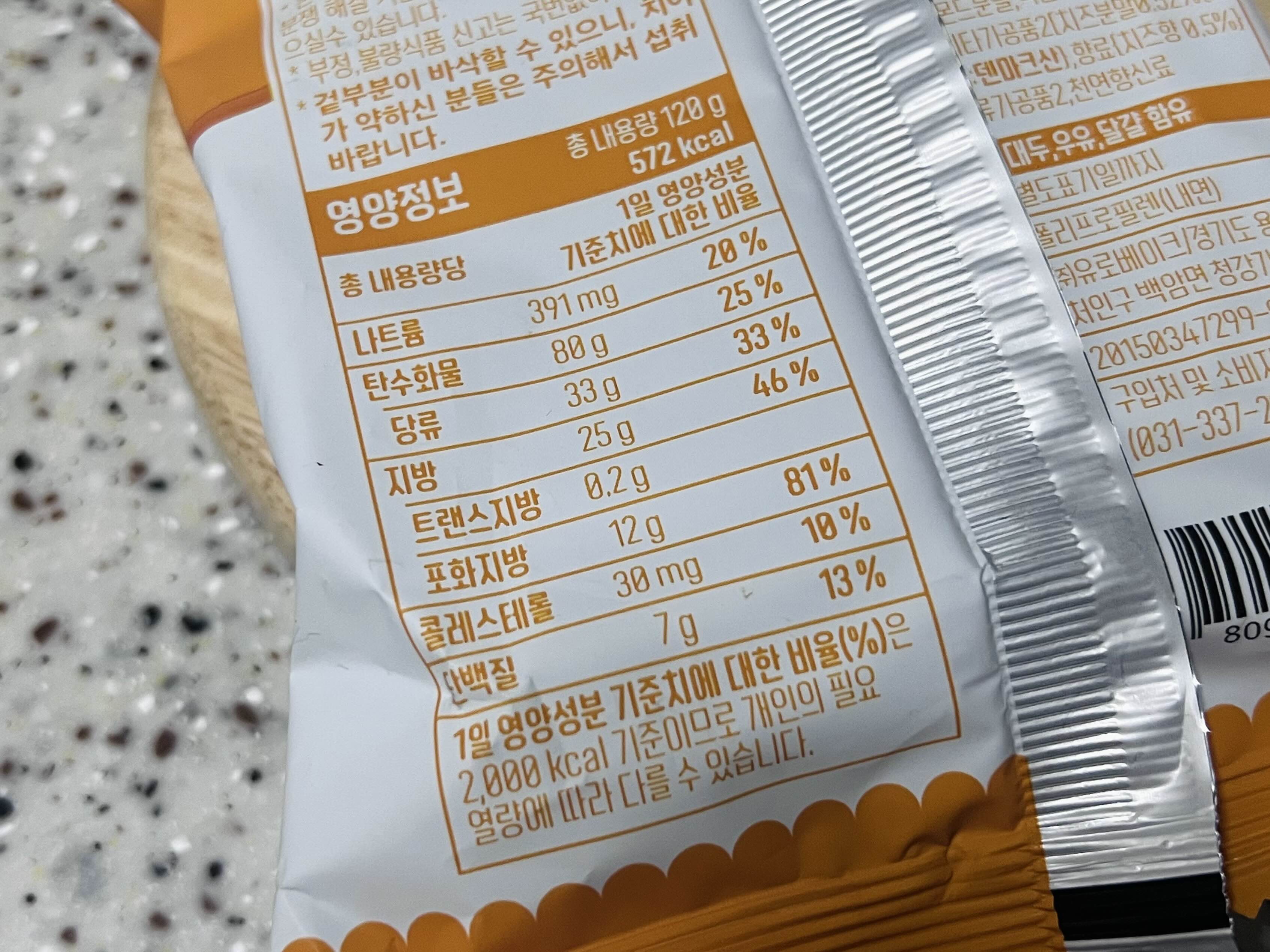 황치즈는 120g 572kcal 로 적지않은 칼로리를 자랑함